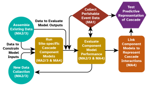 The bold “2040 vision” involves forecasting hazard cascades anywhere (geospatially) at any time (temporally) within our three-dimensional world. To do this sample collection and testing from new events are one part of multi-scale approach to rapid response data collection that inform our modeling program. We aim to advance the understanding of individual land surface hazard components and link hazard component models to create physics-based, data-informed hazard cascade models of the full atmosphere-to-sink land surface cascade.